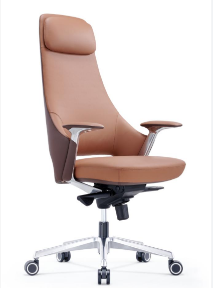Upgrade your office with this stylish and comfortable brown faux leather executive chair. Featuring a high back with a built-in headrest, this chair offers excellent support for long hours of work. The 360° swivel allows for easy movement, while the height-adjustable mechanism ensures a perfect fit for any desk. The padded armrests provide added comfort, and the chrome finishes give the chair a modern, sophisticated touch. The two-toned design adds a sleek and contemporary feel, making this chair the perfect addition to any professional setting.