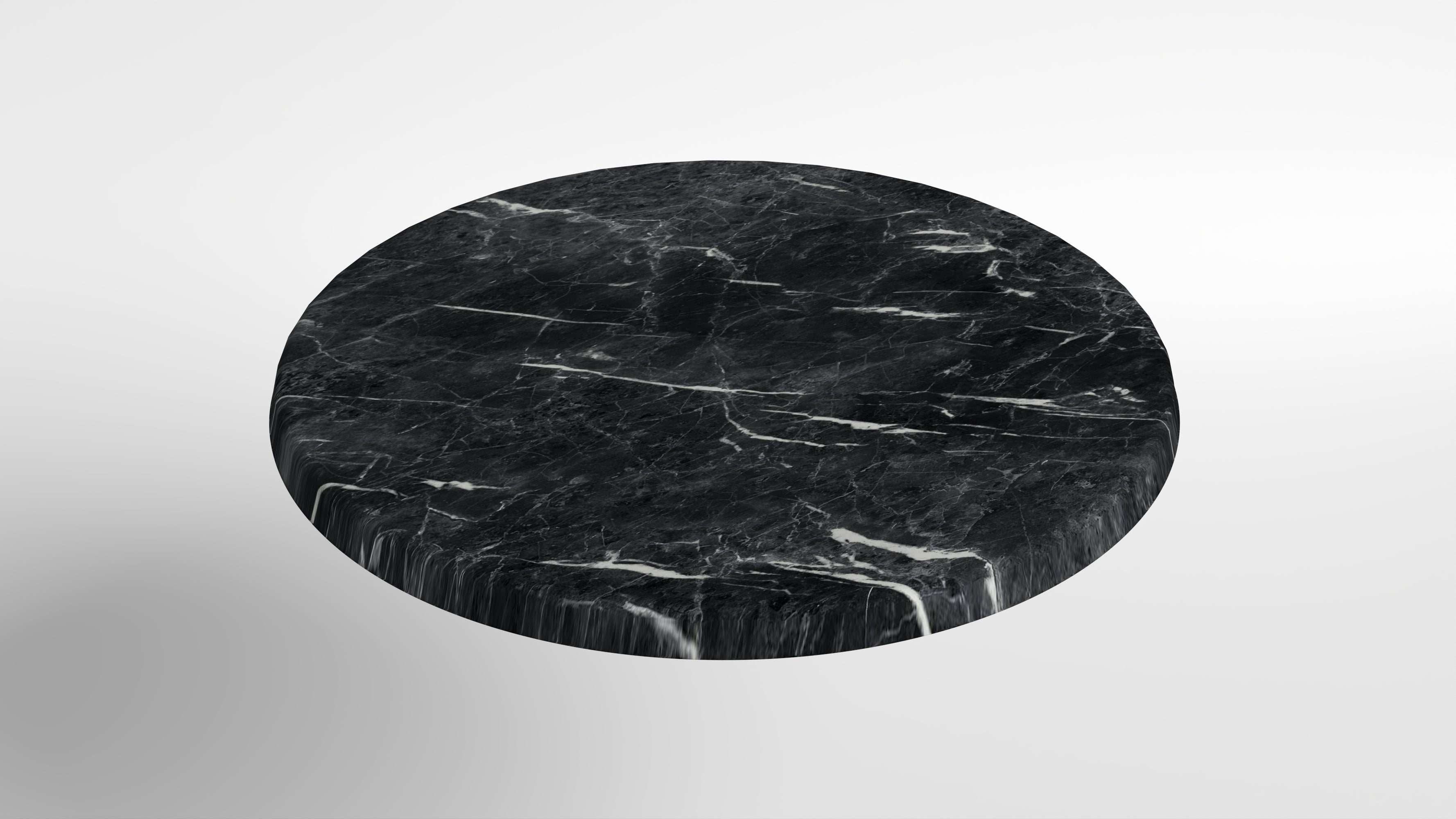 Commercial-Grade Indoor & Outdoor Table with Reinforced Stone-Composite Top: Round Black Marble-Like