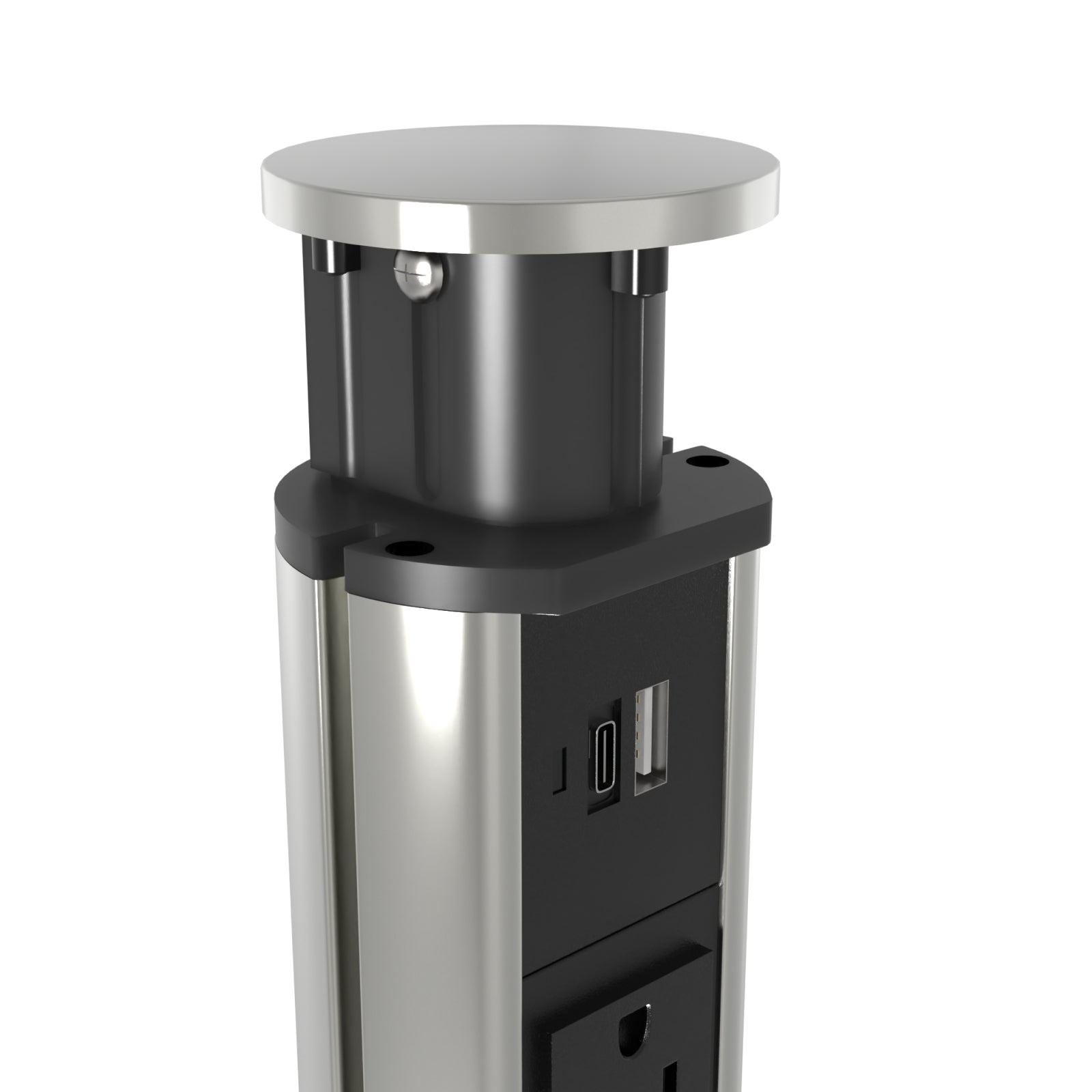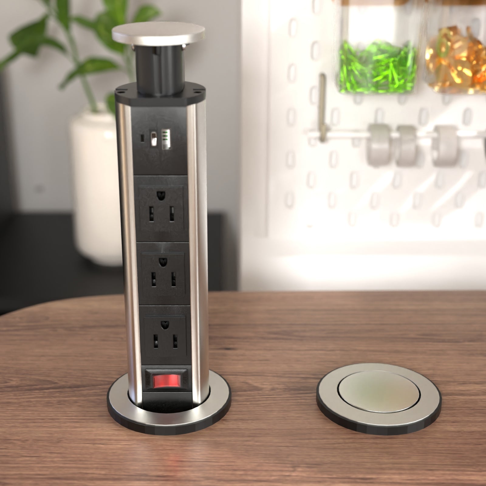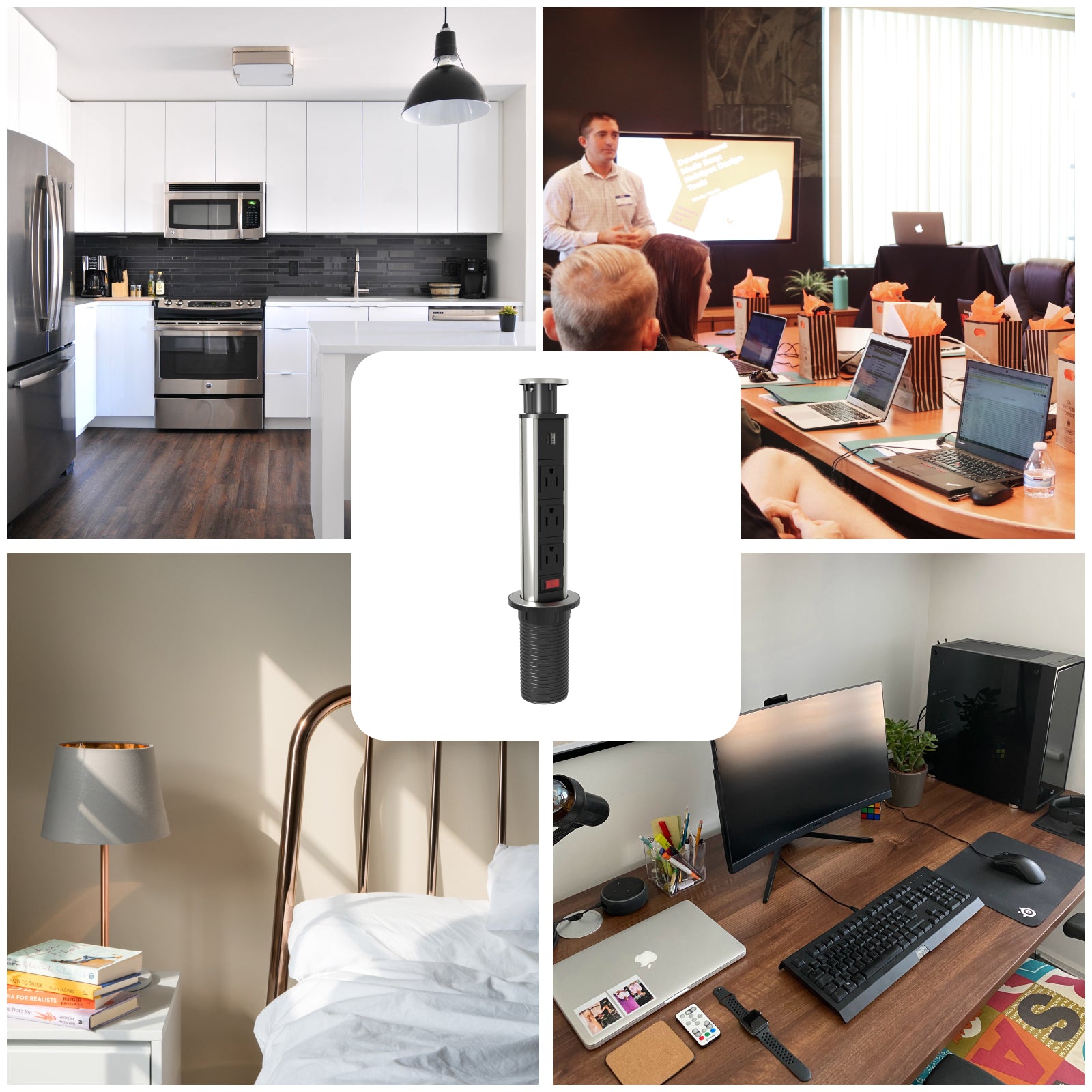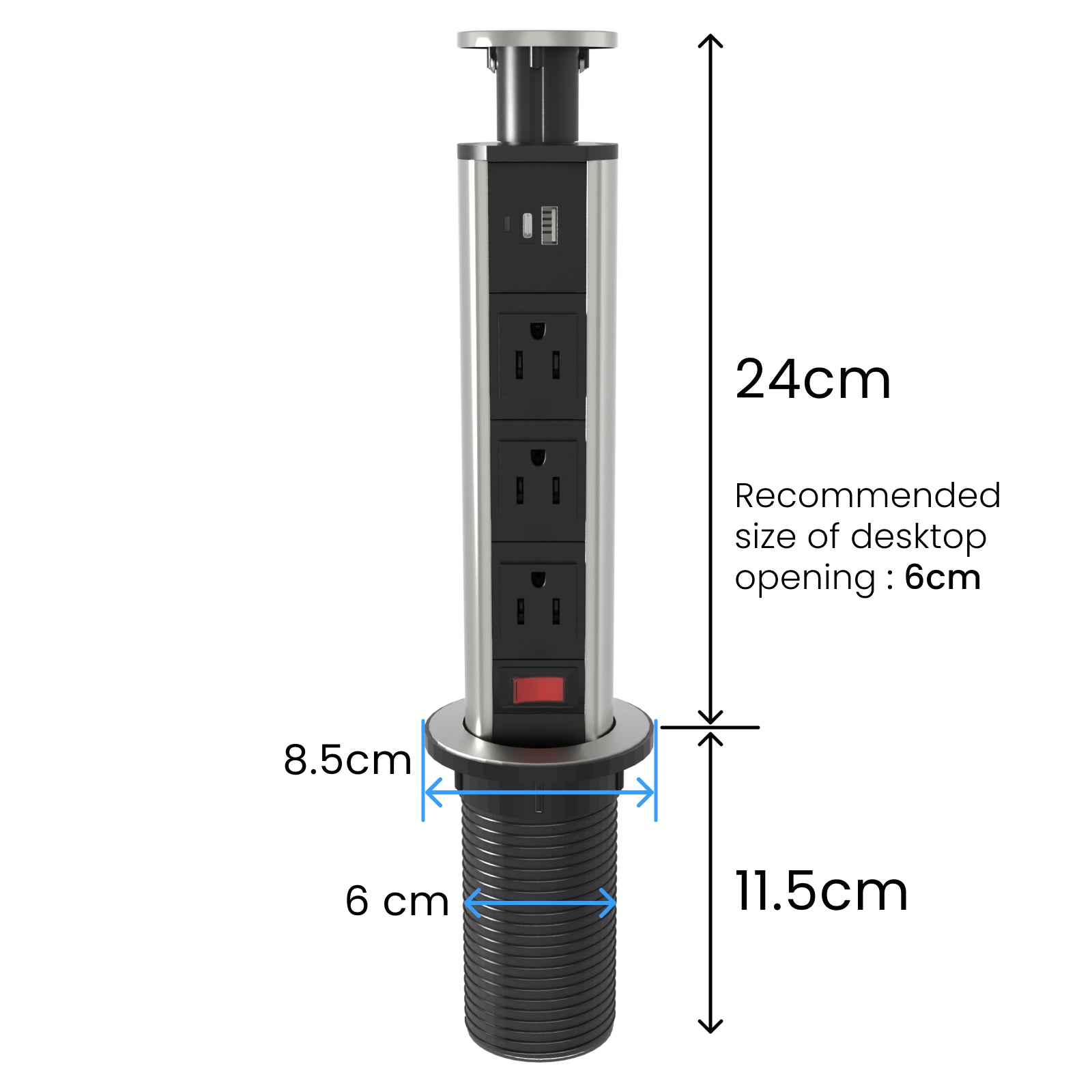 Transform your workspace with our innovative Desk-Inset Power Strip! Designed for seamless integration into your desk, this power strip can be effortlessly pushed down when not in use, keeping your workspace tidy and clutter-free.