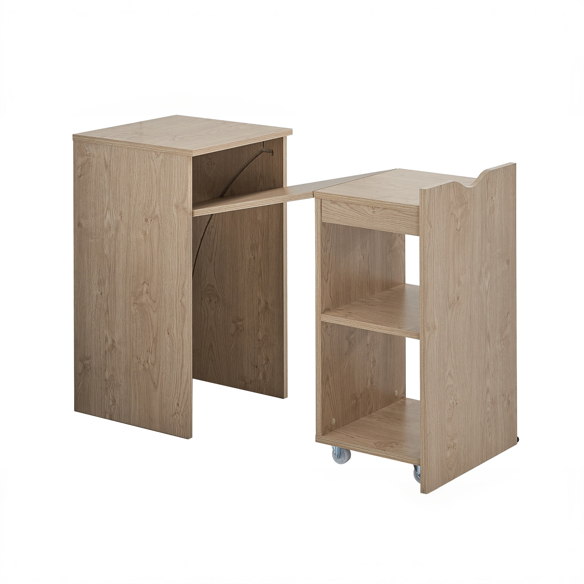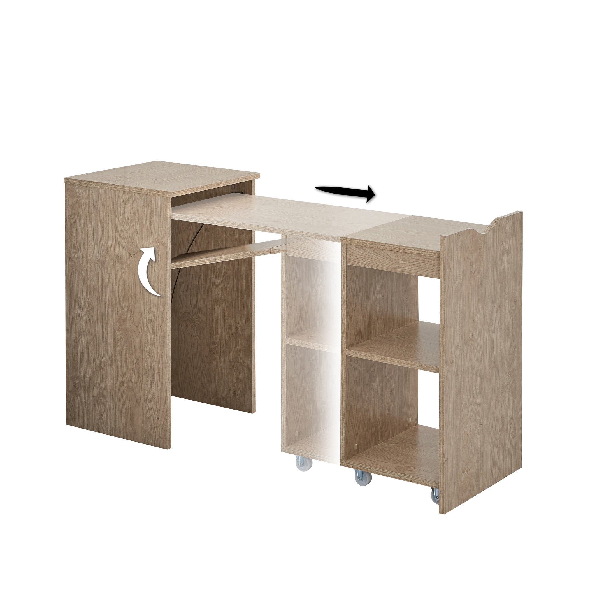 Expandable Work Surface – Smooth pull-out mechanism transforms the compact unit into a spacious desk, perfect for laptop work or writing.
