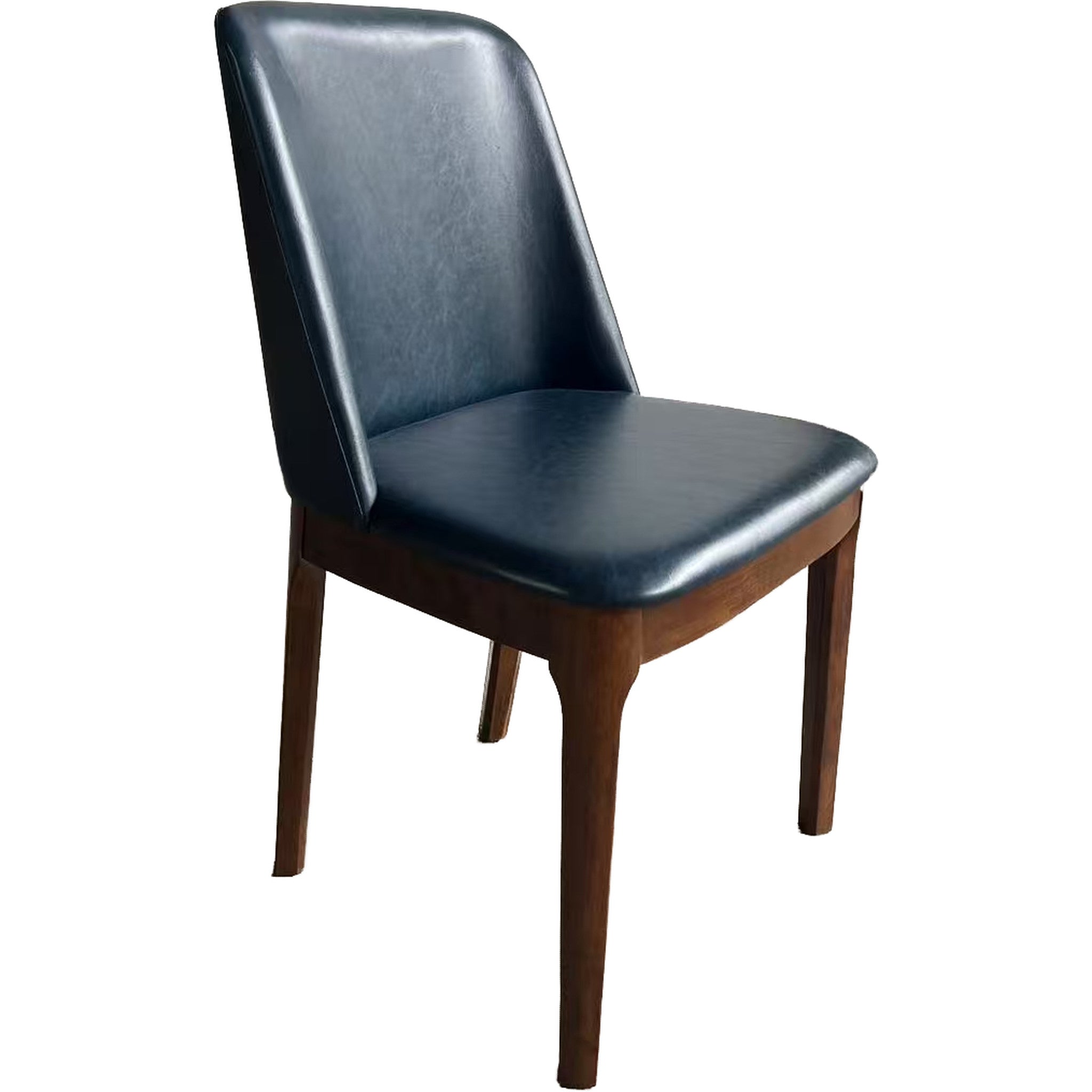 Sophisticated and understated, this modern dining chair features a sleek dark wood frame paired with matching dark upholstery for a clean, monochromatic look. Its curved back and padded seat offer comfort without compromising style, making it a smart addition to upscale restaurants, lounges, or moody dining spaces. Minimal in form but rich in tone, it brings depth and elegance to any environment.