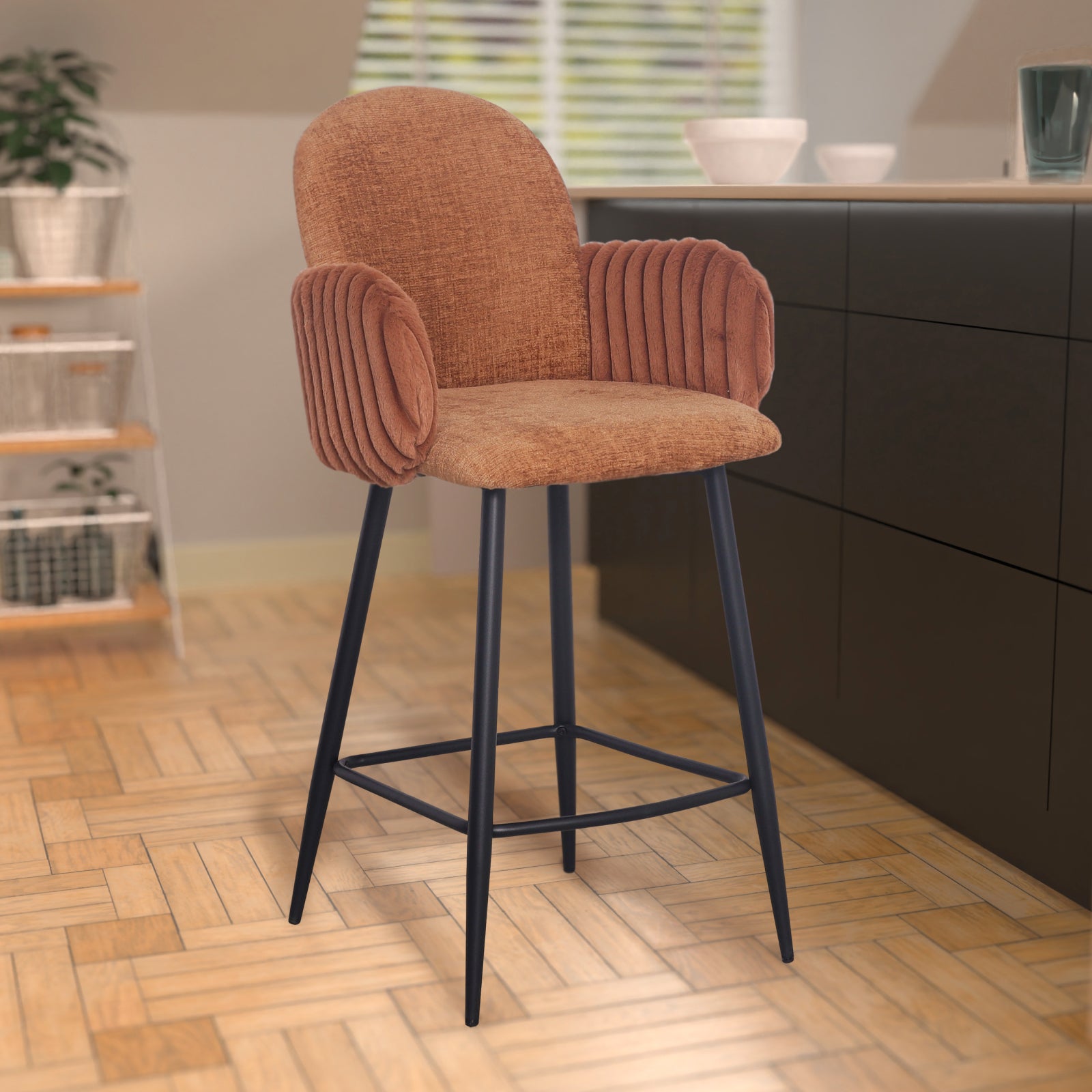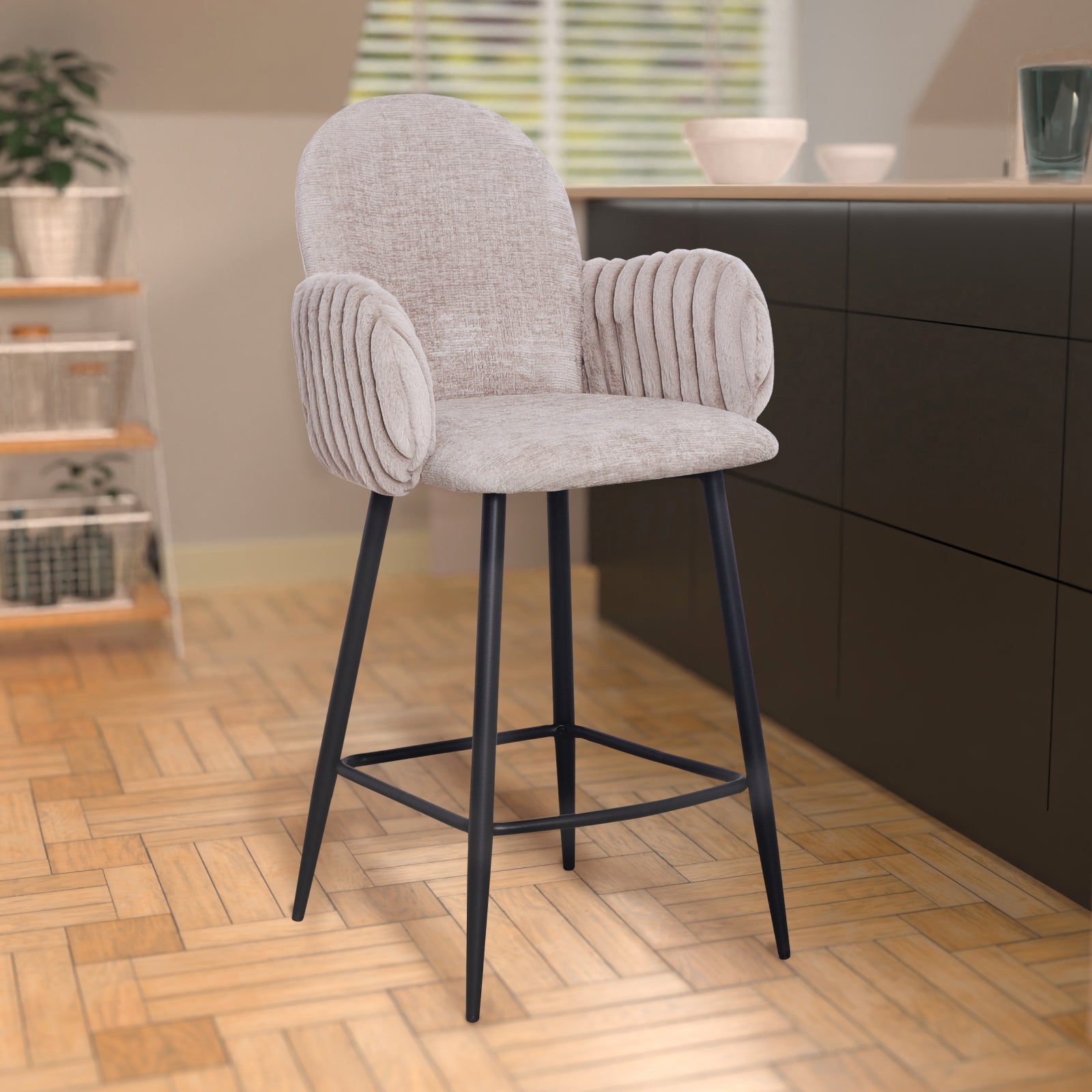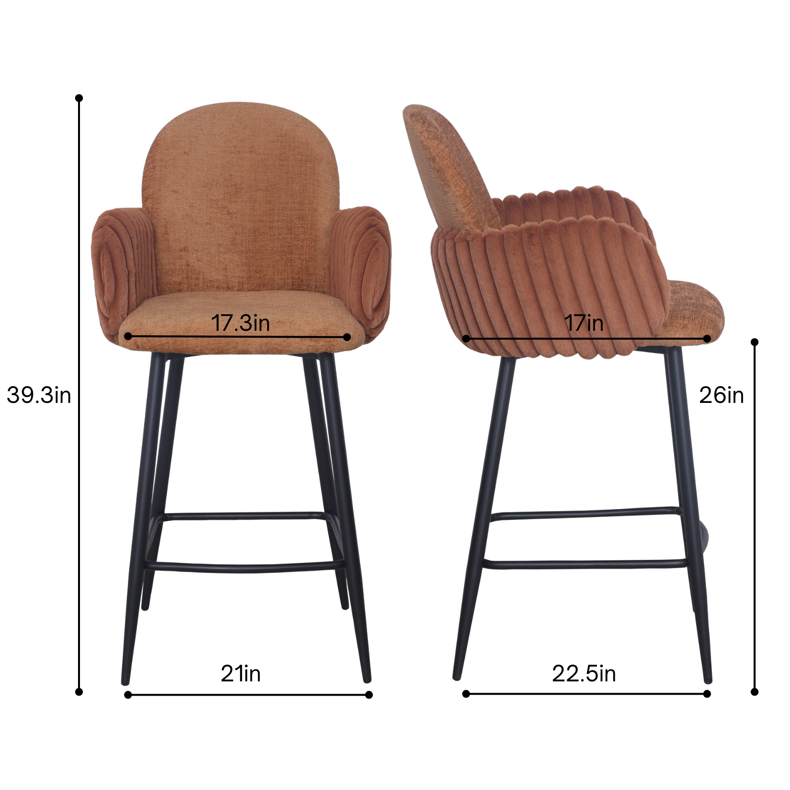 Upgrade your bar or kitchen space with this sleek, modern fabric upholstered bar stool. Designed with both comfort and style in mind, it features plush, tufted armrests for added elegance, while the sturdy metal base offers long-lasting durability and a contemporary touch. Whether used at a kitchen island, home bar, or as a stylish accent piece, this bar stool combines functionality with sophistication.
