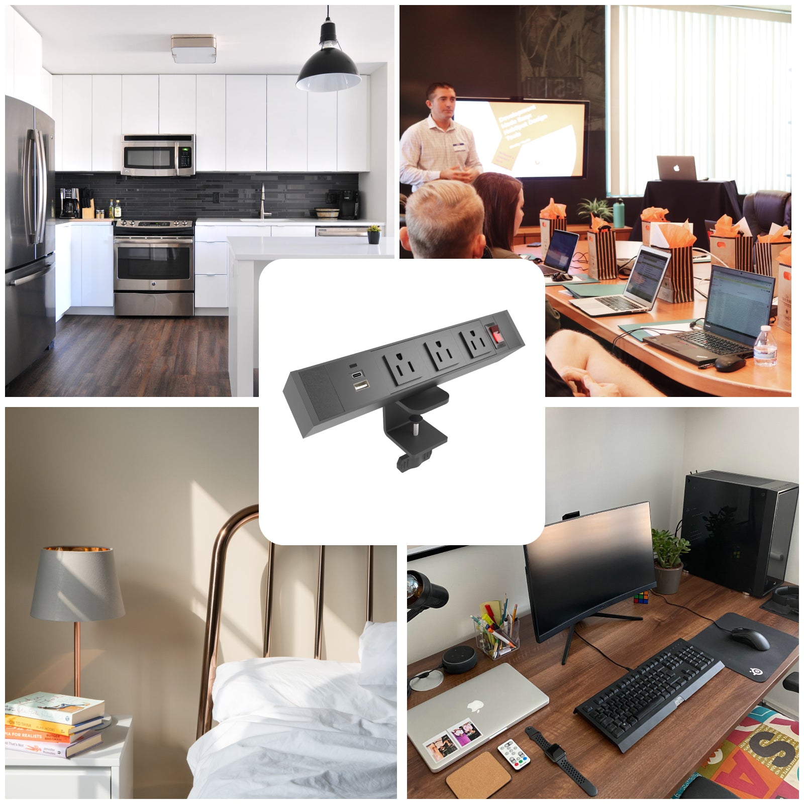 Ample Connectivity: Equipped with 3 AC ports (rated at 125V, 15A) and a USB port (5V, 2.1A), you can charge multiple devices simultaneously, keeping your workspace organized.