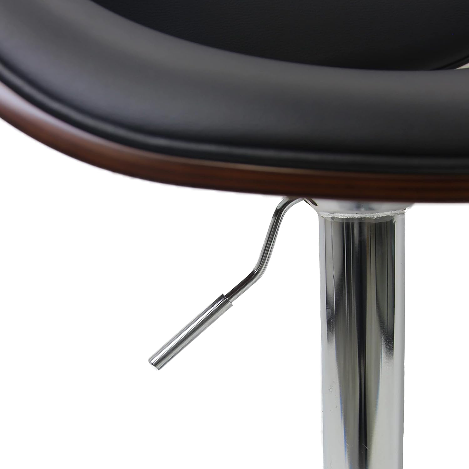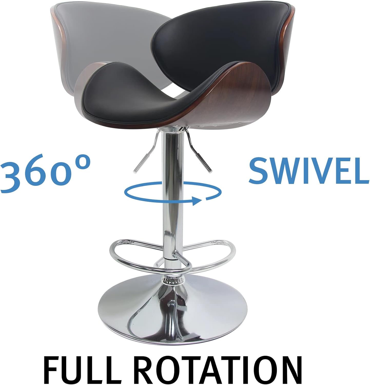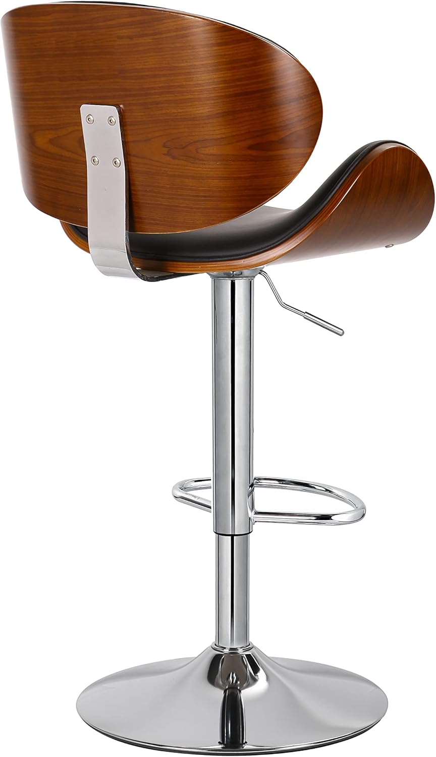 Set of 2 Curved Wood Bar Stools with Metal Base and PU Leather Upholstery, Silver and Black Metal Base Options