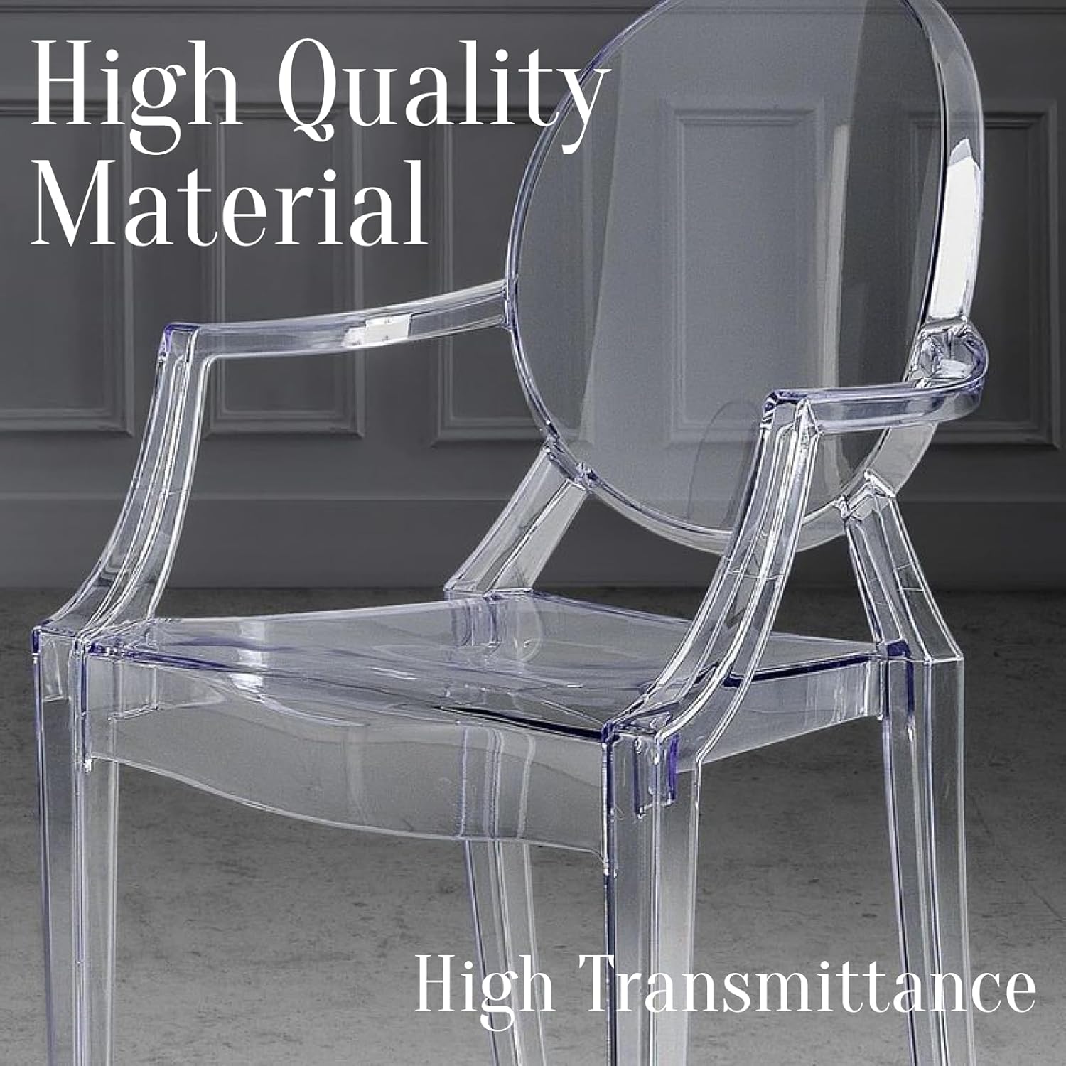 GHOST CHAIR DESIGN: Clear all the way through, without any metal hardware. Curved legs and an ergonomically rounded back support design.
