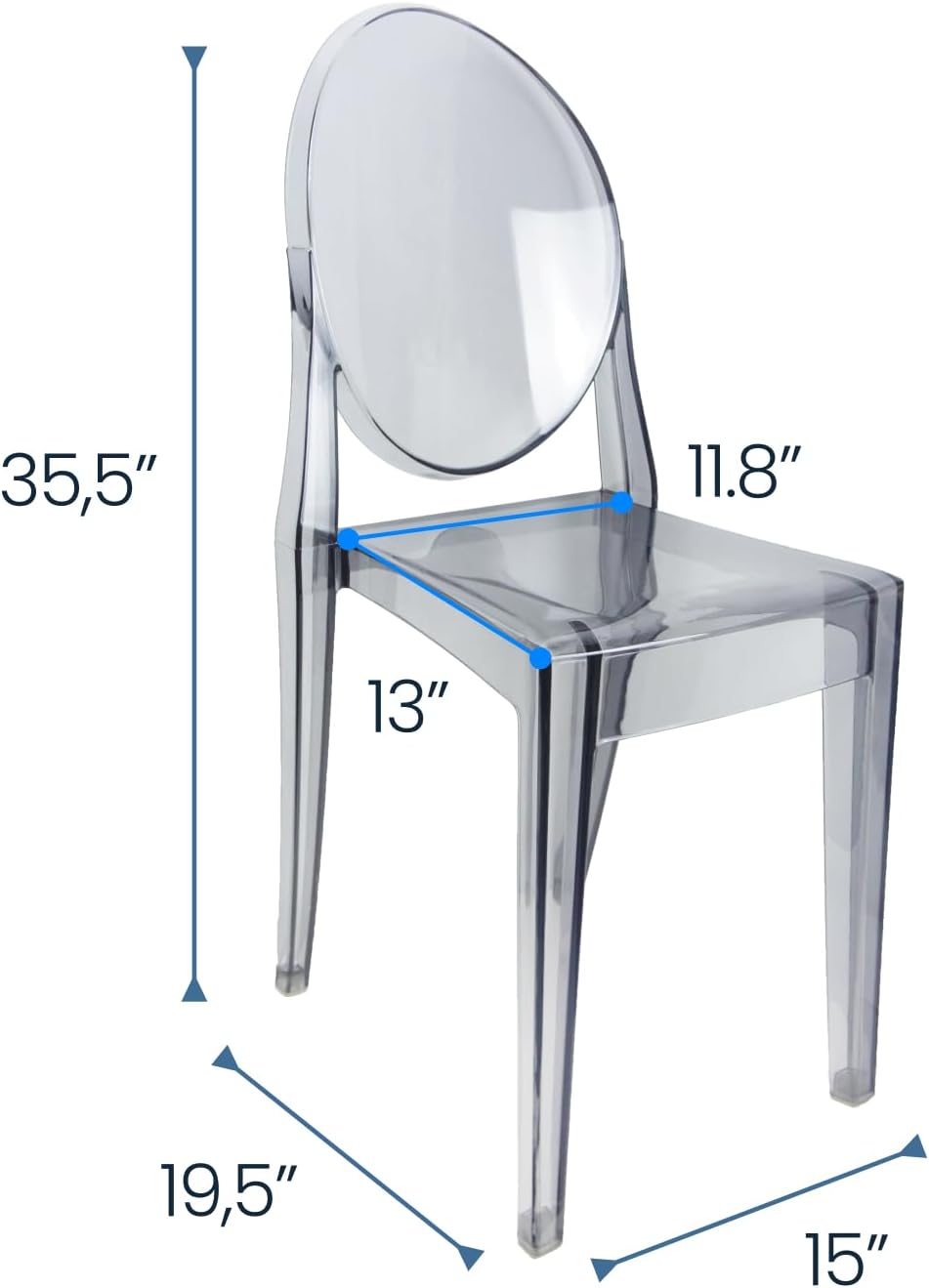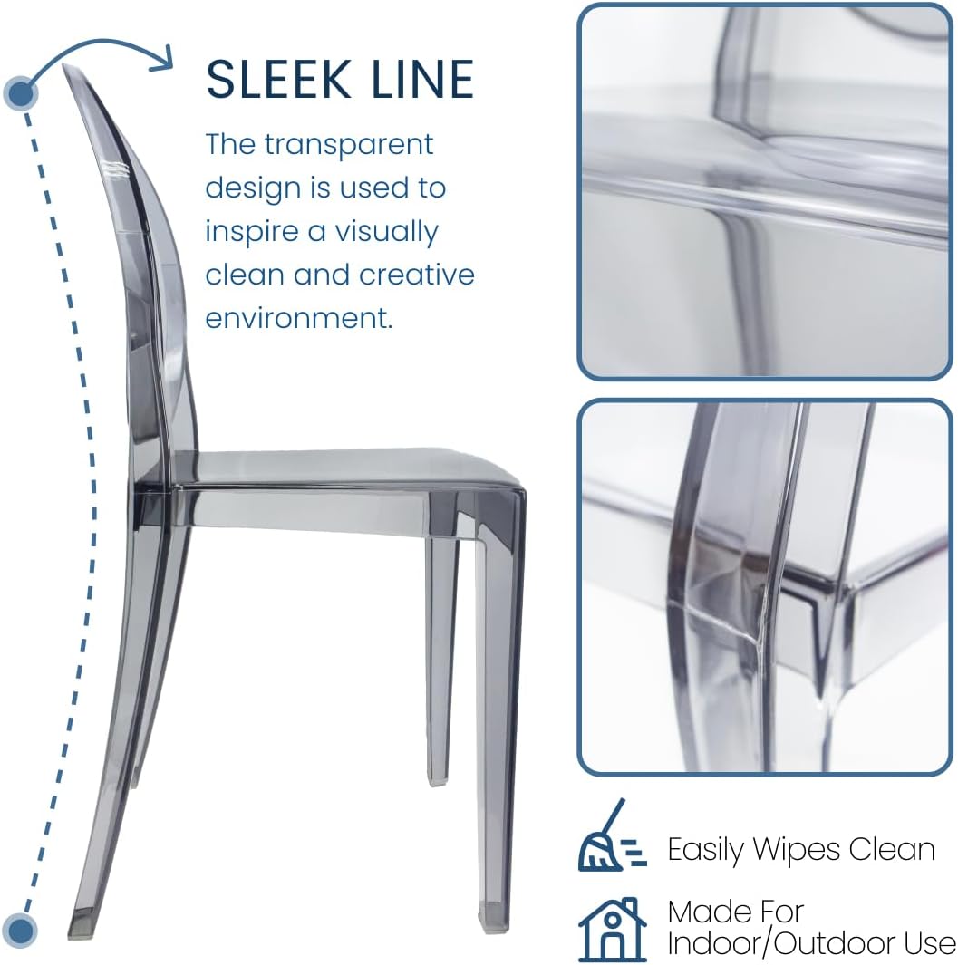Set of 4 Smoke Gray Clear Ghost Chairs, Modern Transparent Side Chairs, Stackable Dining Room Restaurant Chairs for Events, Weddings, Banquets