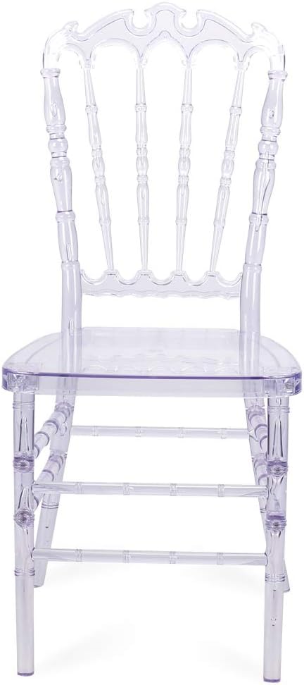 - With its durable, lightweight construction and elegant styling, this Crystal Stacking Napoleon Chair will be the prime seating choice for all of your special events, whether indoors or outside.