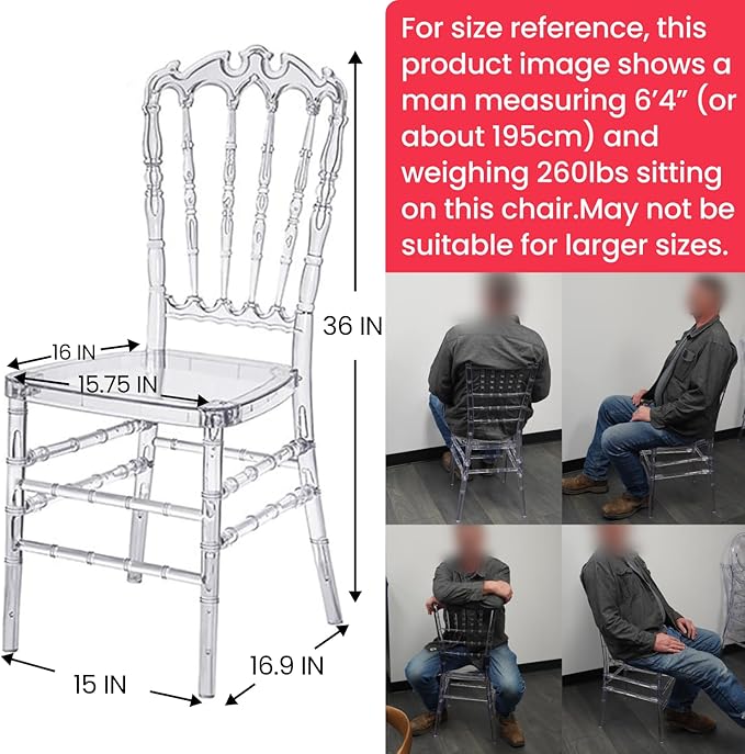 - [Great Value] Our Crystal Clear Chairs are perfect for elegant occasions, especially for weddings, parties, and events. They are also a wonderful choice for a home or kitchen side chair.