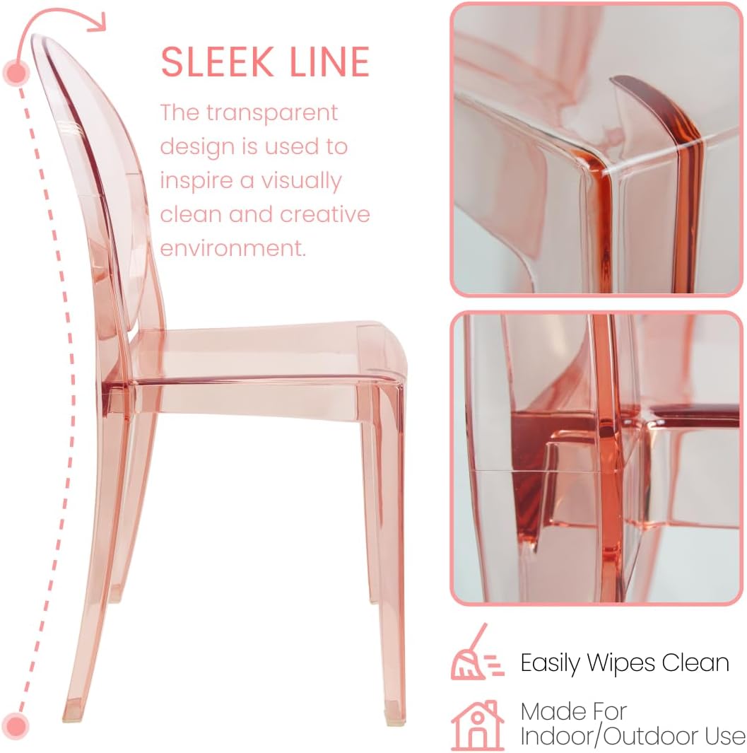 Set of 4 Pink Clear Ghost Chairs, Modern Transparent Accent Side Chairs, Stackable Dining Room Restaurant Chairs for Events, Weddings, Banquets